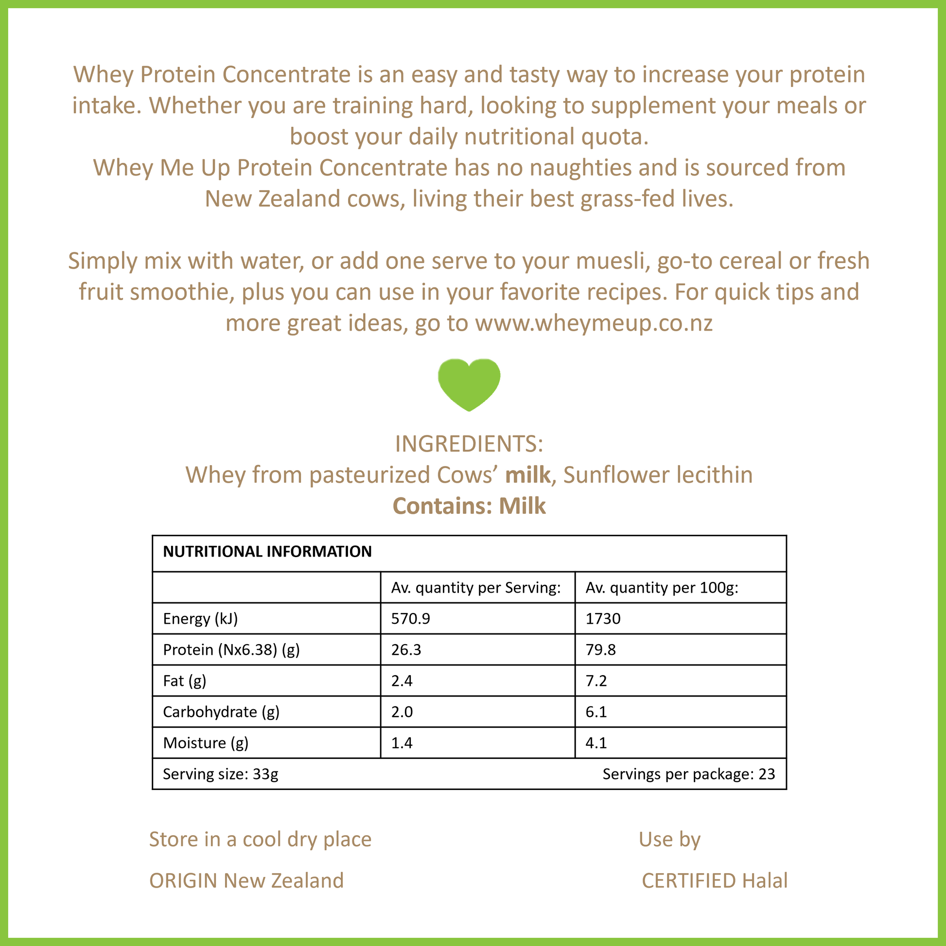 Whey Protein Concentrate is soluble milk protein manufactured from fresh cheese whey. This Whey Protein Concentrate is a versatile addition to a daily menu and offers a high nutritional value, with no fillers, added extras of fancy gimmicks.